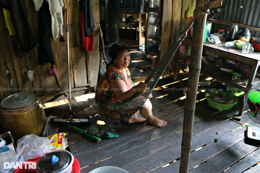 Nói rồi, người phụ nữ này giải thích: "Sàn nhà sau bị mục hết rồi, hôm trước đi bị sập, tôi té lọt xuống sàn đau điếng. Hôm qua, tôi định bụng xin cây về cho ông chồng đóng tạm lại mà chưa xin được".